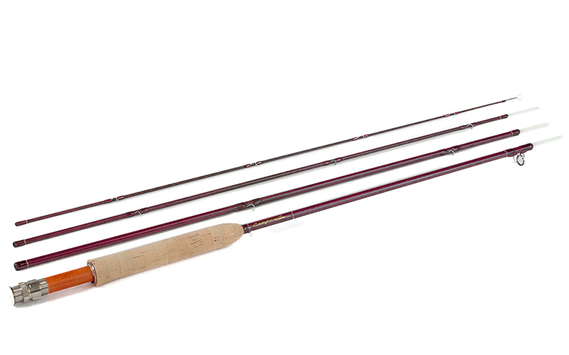 ともにアンサンド処理のブランクに鮮やかなスカイブルーカラー。スレッドにレッドを使い、リールシートも真っ赤な金具に軽量なバターナットフィラーを使いました。グリップはともにショートハーフウェル。Campanellaの文字は手書きのレッドレター、全てのロッドにシリアルナンバーがつきます。
